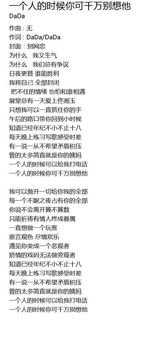 | yí ge rén de shí hòu nǐ kě qiān wàn bié xiǎng tā | |