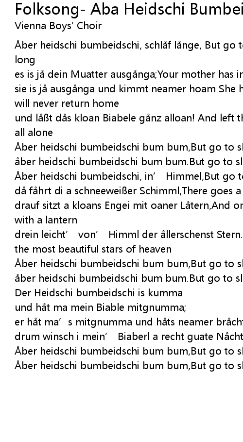 | [00:37.37] | ber heidschi bumbeidschi bum bum. But go to sleep bum bum |