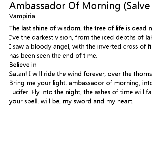 Ambassador Of Morning (Salve Luxfer) Lyrics