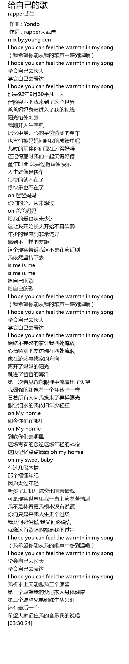 | [03:26.36] | 希望大家记住我的音乐我的说唱 |