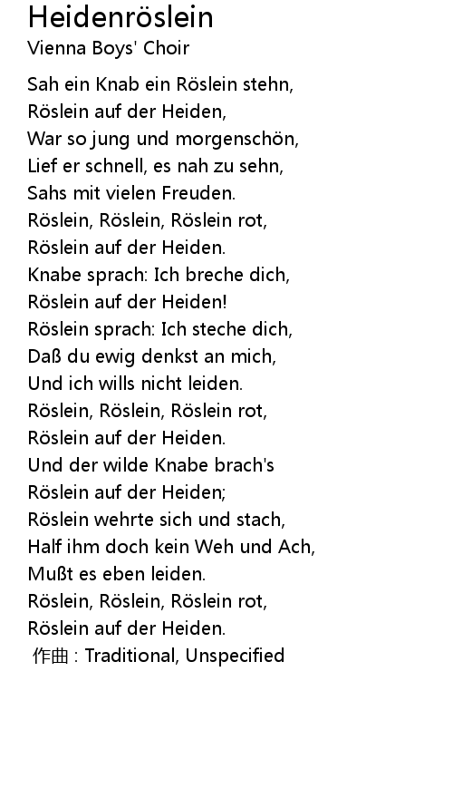 | [01:54] | Röslein, Röslein, Röslein rot, |