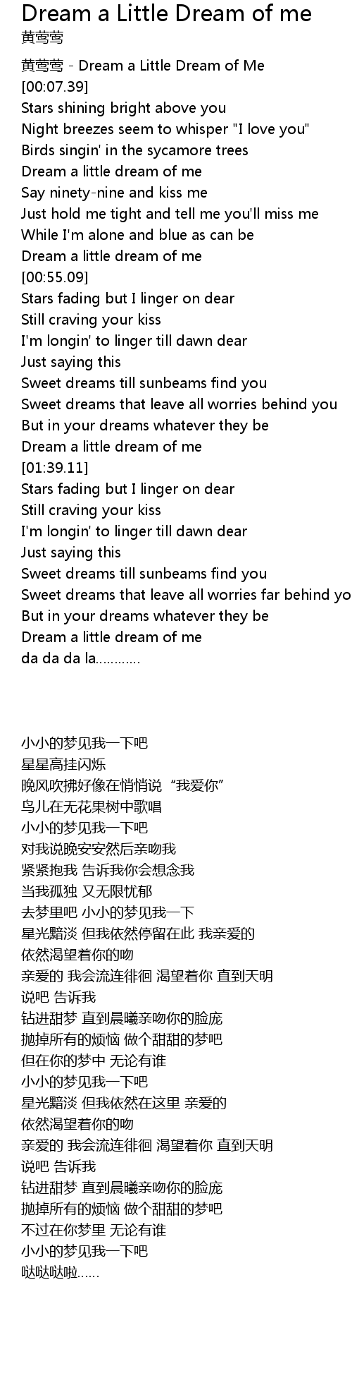 | [01:35.11] | Dream a little dream of me |