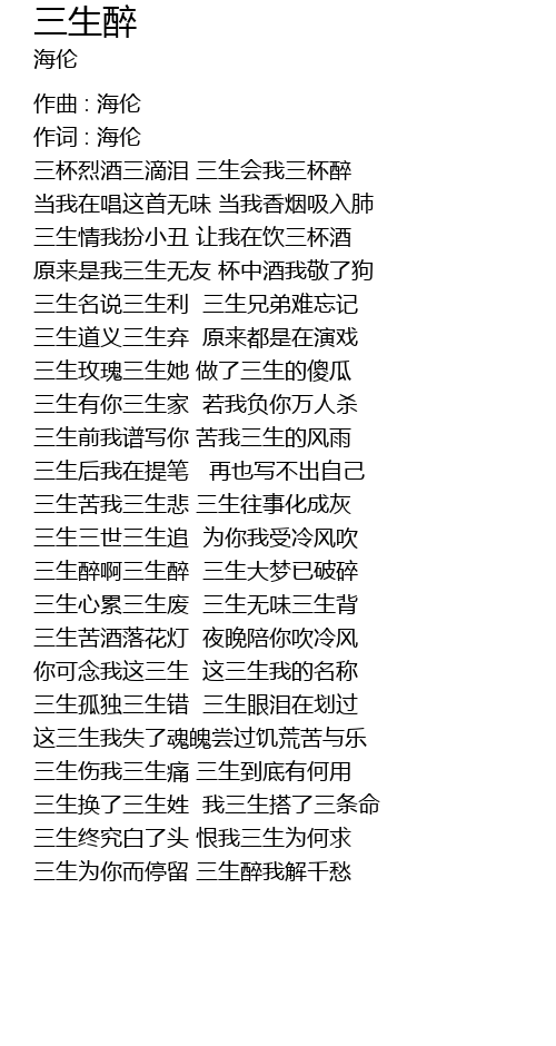 | 三杯烈酒三滴泪 三生会我三杯醉 | |