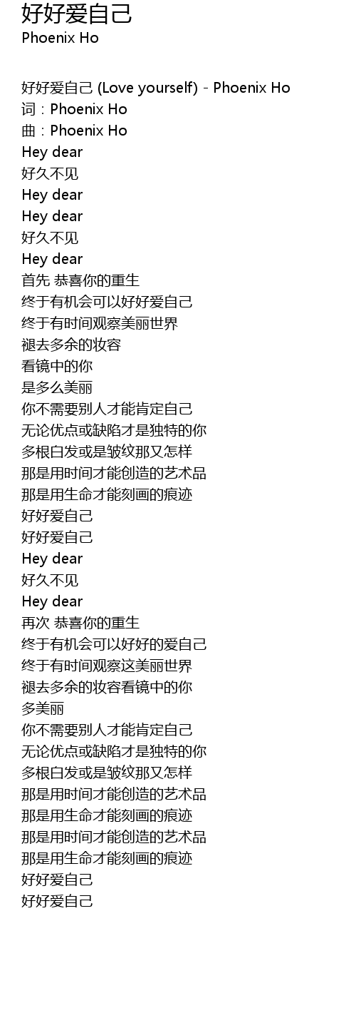 | 好好爱自己 (Love yourself) - Phoenix Ho | |