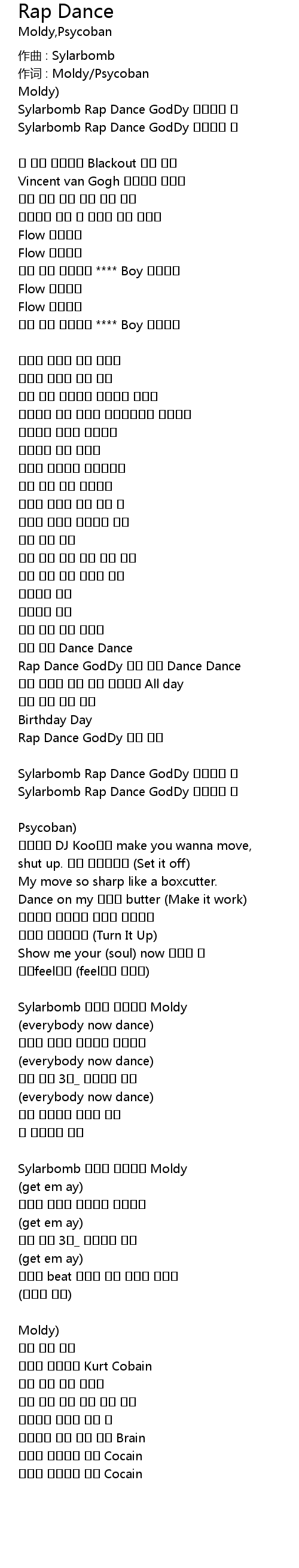 作词 : Moldy/Psycoban |