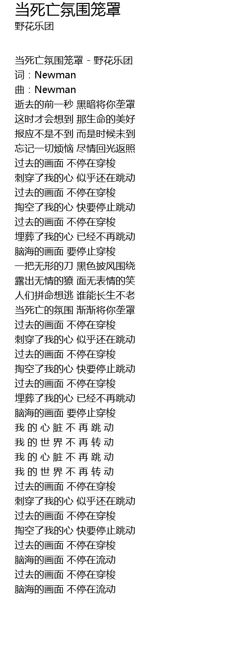 | 当死亡的氛围 渐渐将你垄罩 | |
