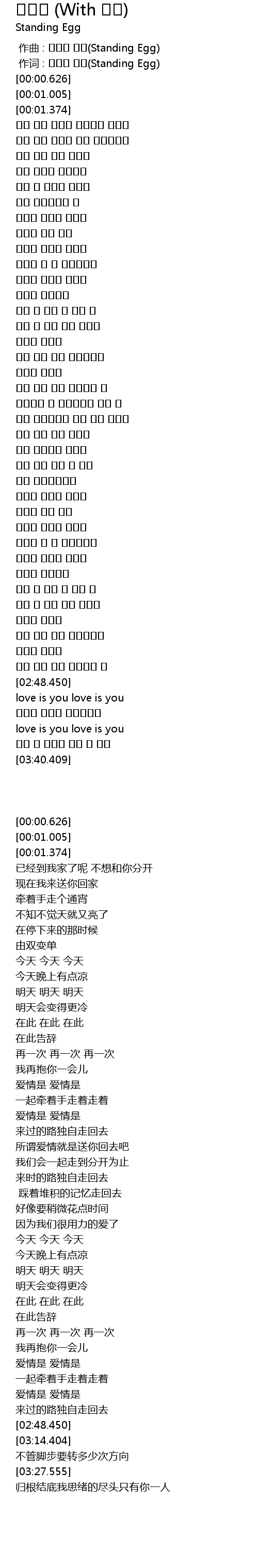| [00:00.000] | zuò qǔ : Standing Egg |
