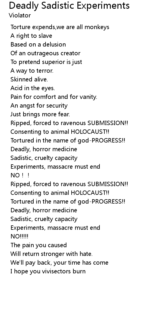 | Song | Deadly Sadistic Experiments |