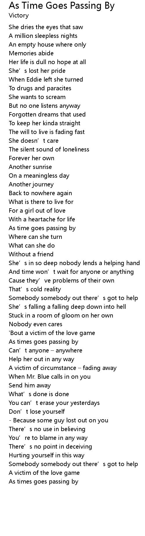 | As time goes passing by | |