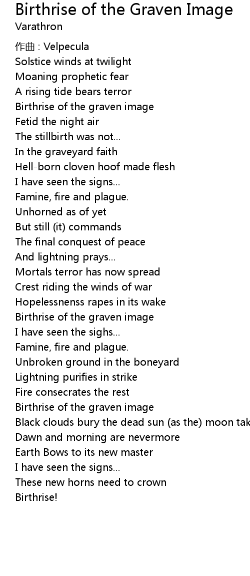 | Song | Birthrise of the Graven Image |