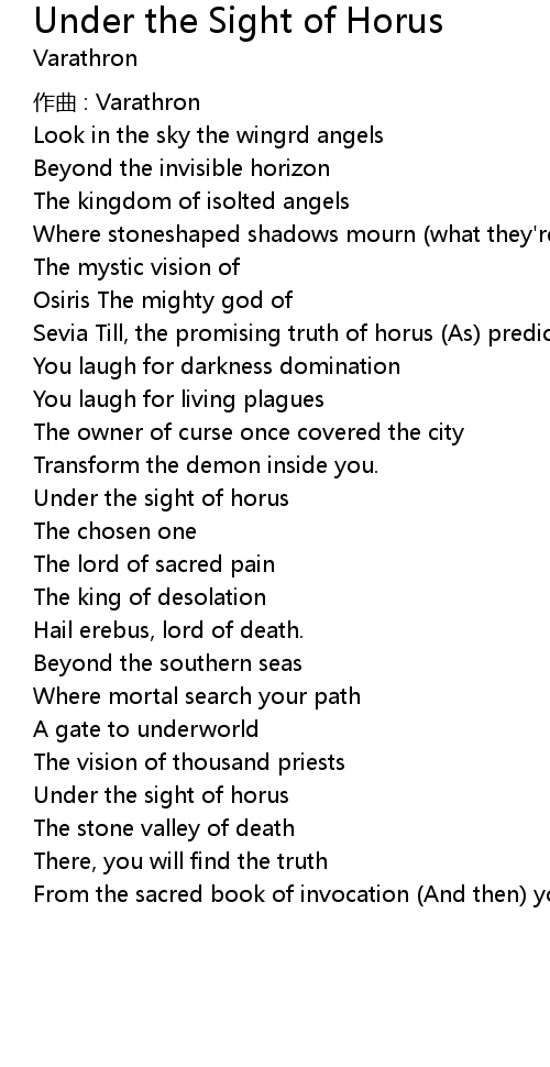 | Song | Under the Sight of Horus |