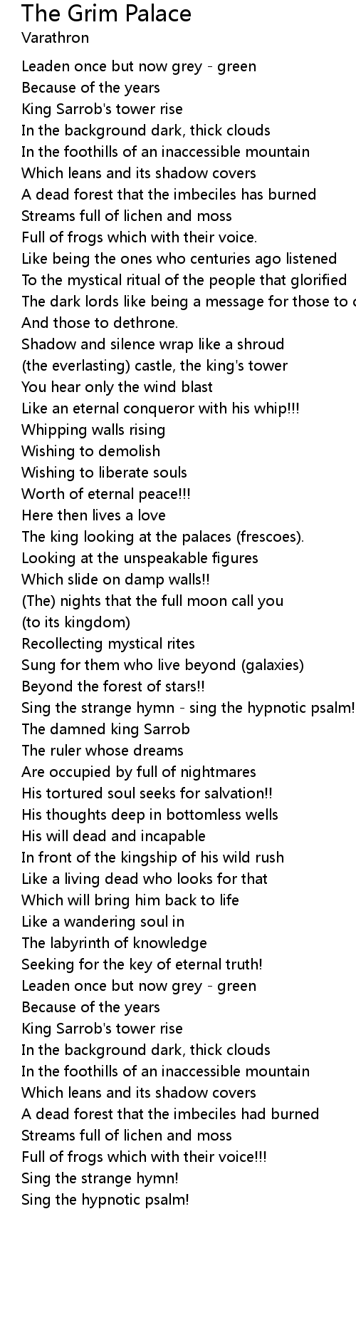 The Grim Palace Lyrics