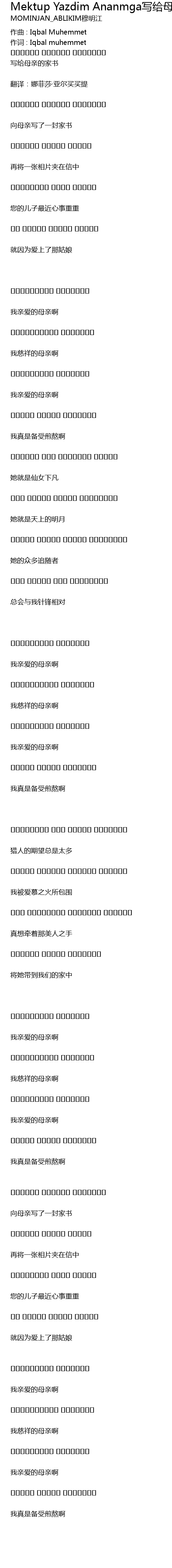 | 作词 : Iqbal muhemmet | |