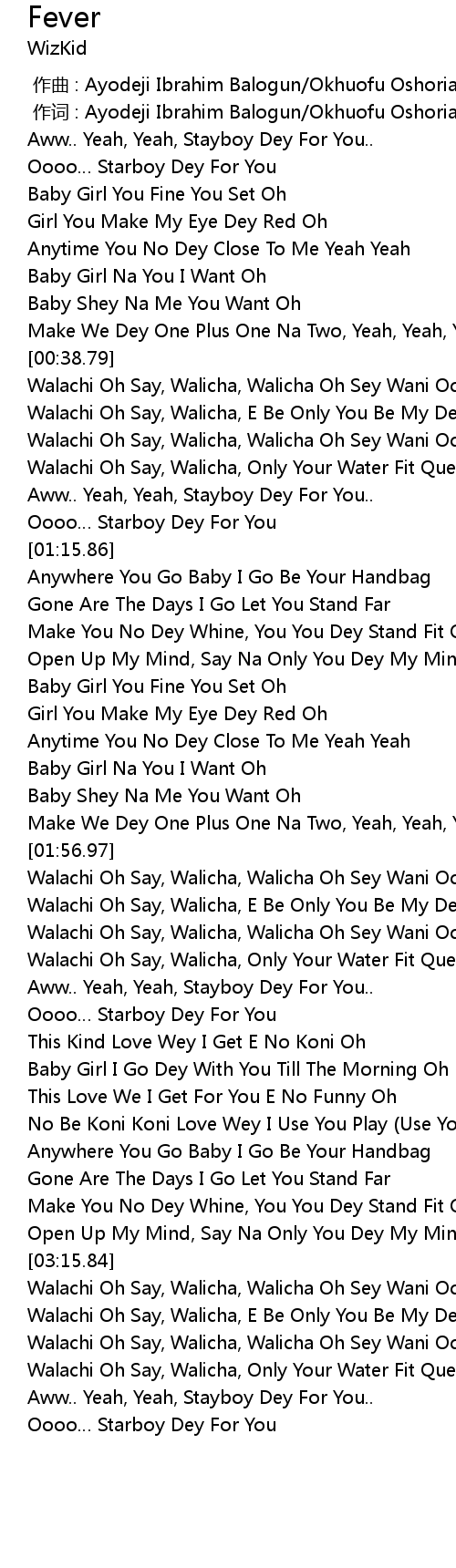 | [00:25.57] | Anytime You No Dey Close To Me Yeah Yeah |