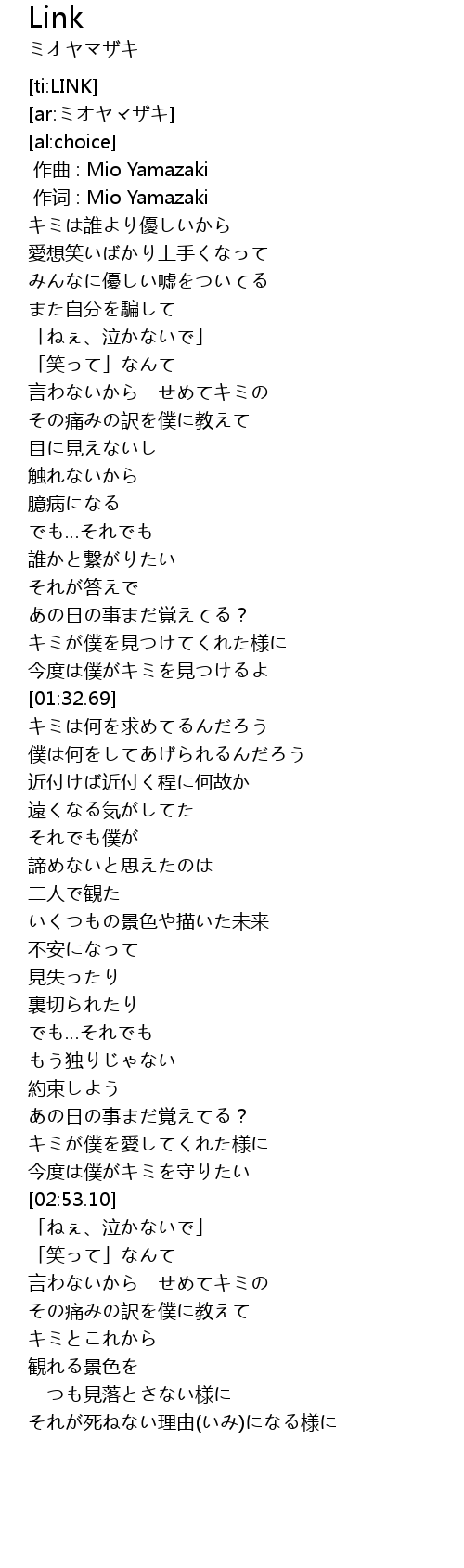 | [00:01.000] | zuò cí : Mio Yamazaki |