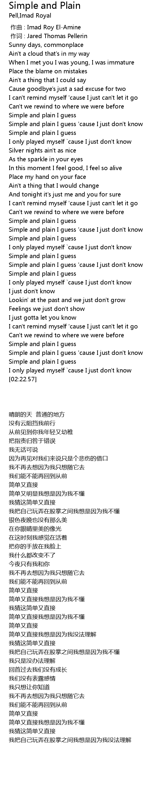 | [01:40.51] | Simple and plain I guess ' cause I just don' t know |