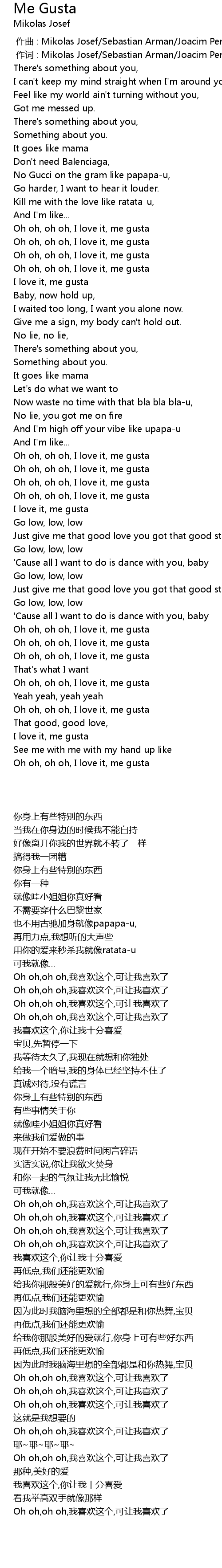 | [02:25.51] | Oh oh, oh oh, I love it, me gusta |