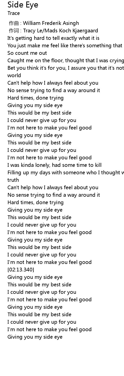 | [01:47.314] | Giving you my side eye |