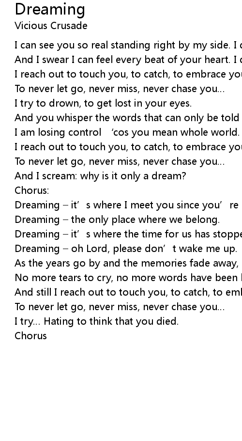 | Dreaming – it’s where I meet you since you’re gone. | |