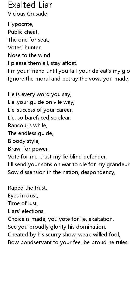 Vote for me, trust my lie blind defender, |