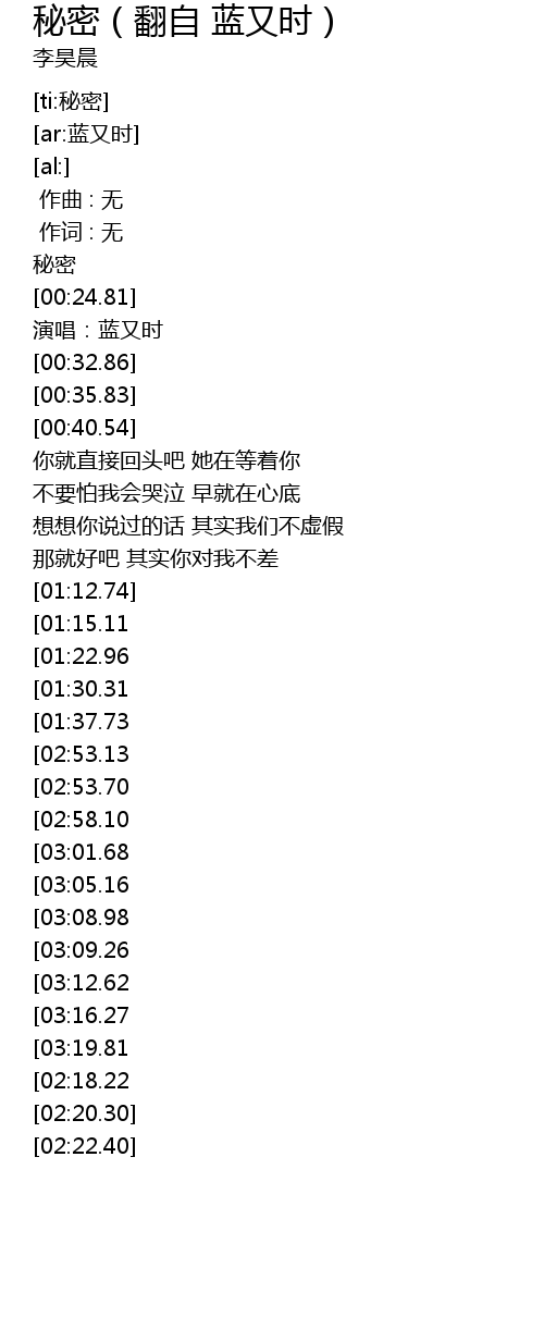 | [03:52.53][02:53.70][01:46.09] | 我们的爱情是秘密 不能成立 |
