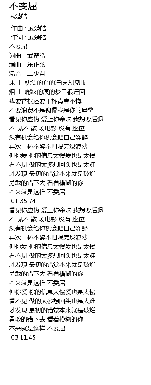 | [02:36.25] | běn lái jiù shì zhè yàng bù wěi qū |