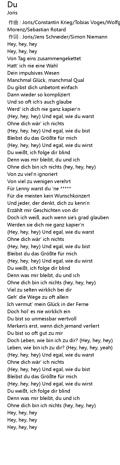 | [00:00.028] | 作词 : Joris/Jens Schneider/Simon Niemann |