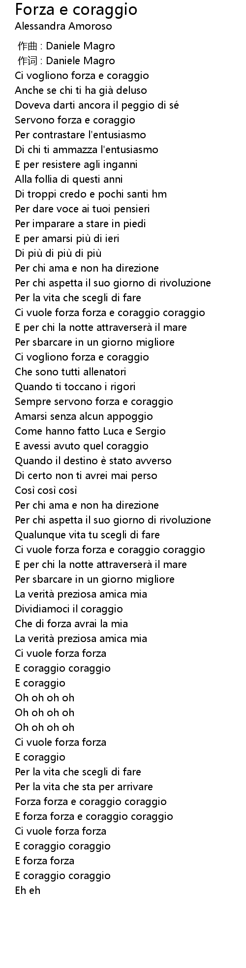 | [01:03.31] | Ci vuole forza forza e coraggio coraggio |