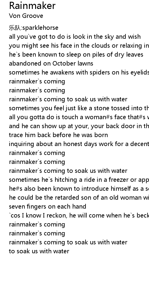 | [01:02.37] | rainmaker s coming to soak us with water |