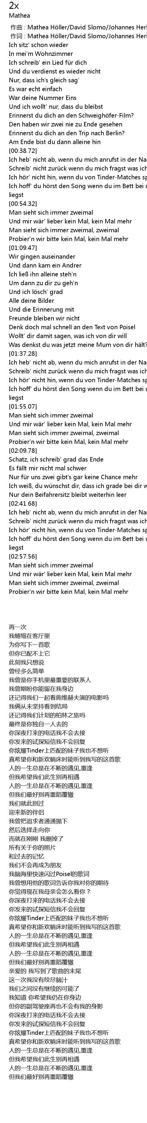 | [00:01.000] | 作词 : Mathea Höller/David Slomo/Johannes Herbst |