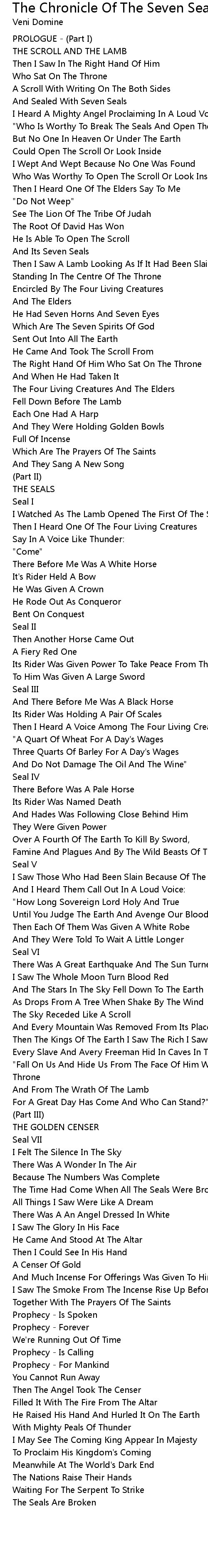 I Watched As The Lamb Opened The First Of The Seven Seals |