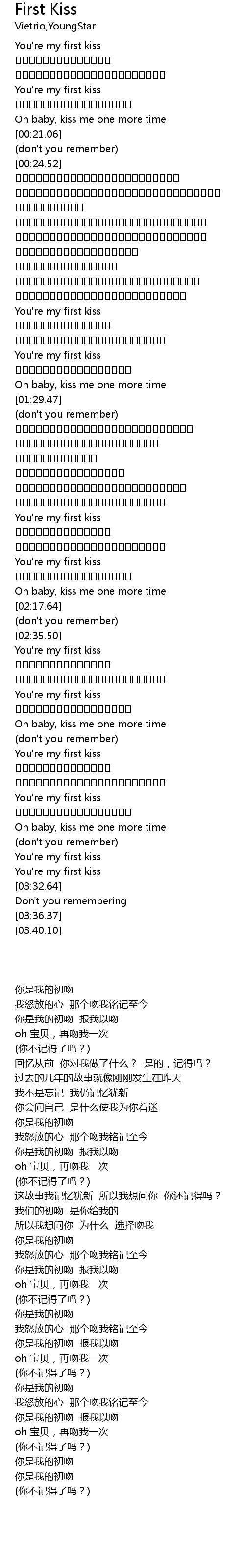 | [03:13.53] | You' re my first kiss |