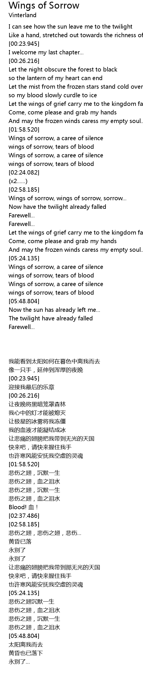 wings of sorrow, tears of blood |