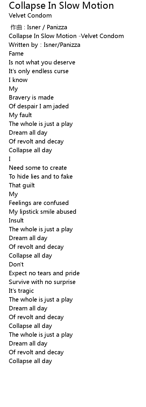 | [00:00.156] | Collapse In Slow Motion Velvet Condom |