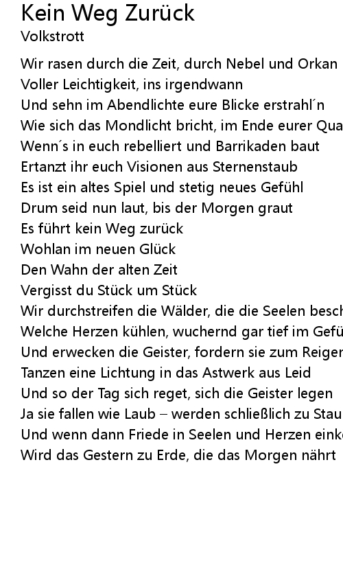 | Wir rasen durch die Zeit, durch Nebel und Orkan | |