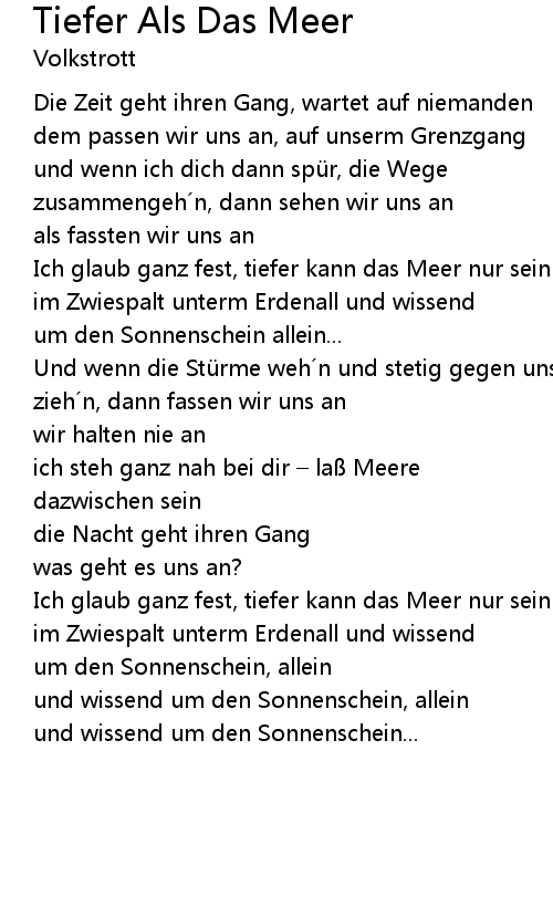 | Ich glaub ganz fest, tiefer kann das Meer nur sein | |