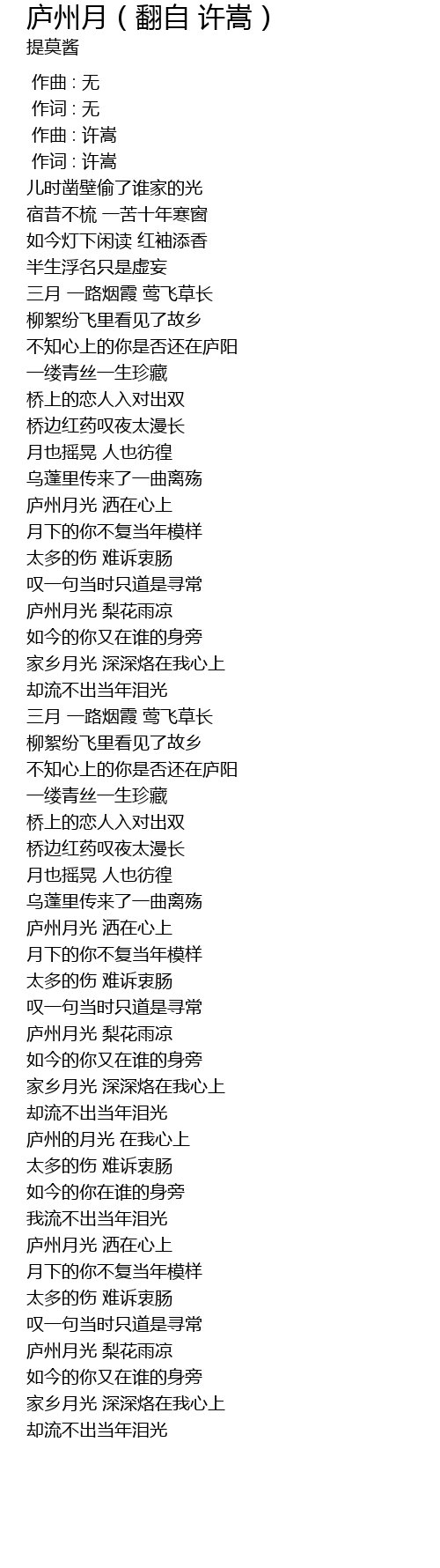 | [03:02.000] | 庐州的月光 在我心上 |