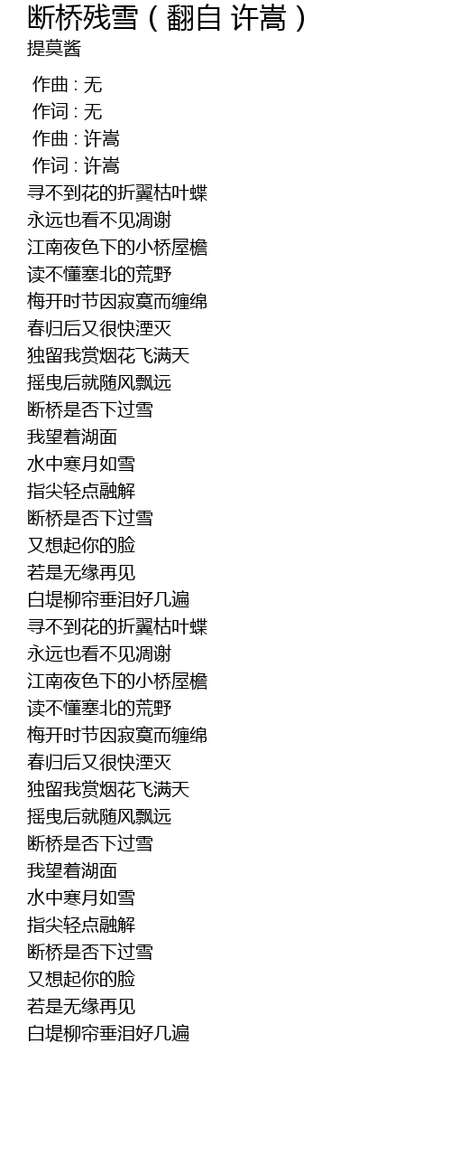 | [02:51.440] | 断桥是否下过雪 |