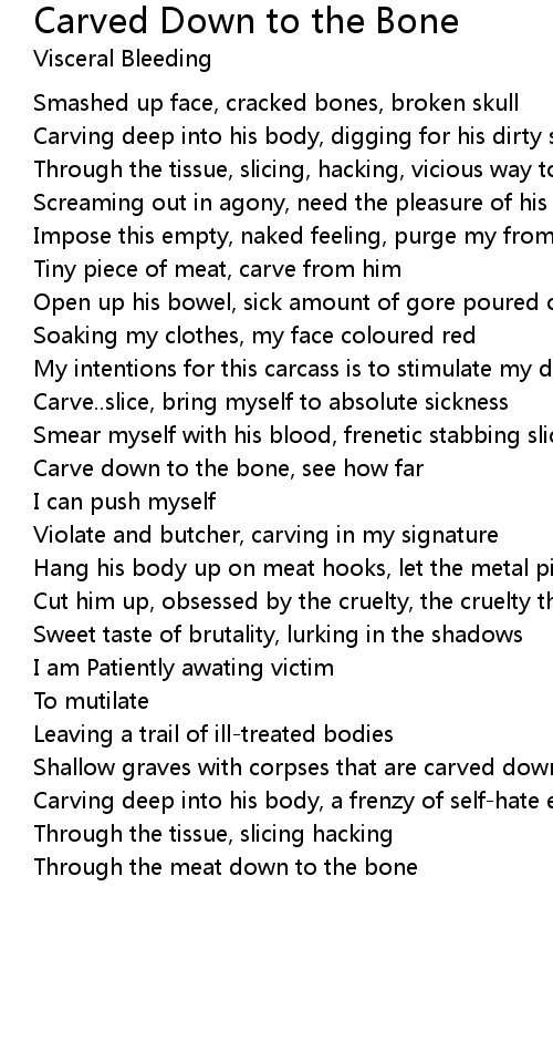 Cut him up, obsessed by the cruelty, the cruelty that has filled my being