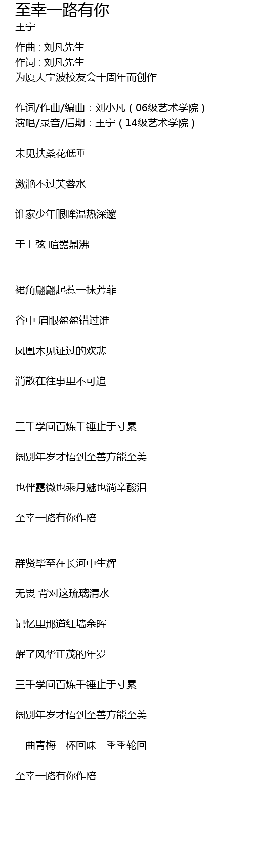 | 作词/作曲/编曲:刘小凡(06级艺术学院) | |