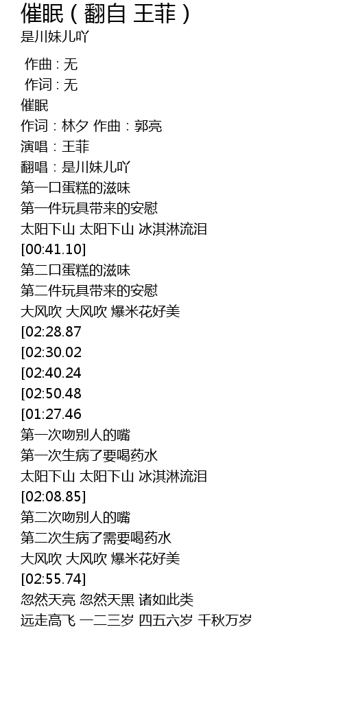 | [02:00.46] | 太阳下山 太阳下山 冰淇淋流泪 |