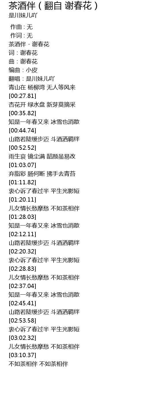 | [00:00.13] | 茶酒伴 - 谢春花 |