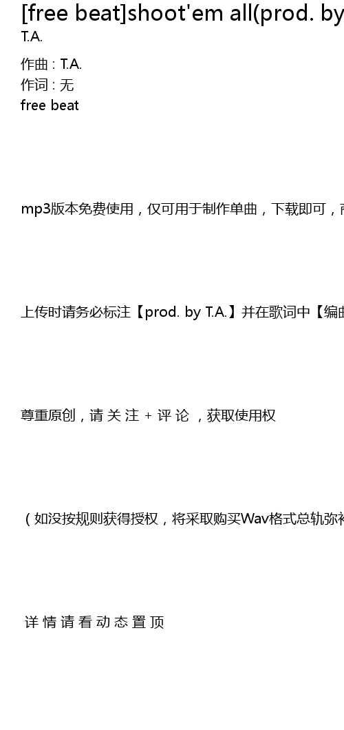 | 上传时请务必标注【prod. by T.A.】并在歌词中【编曲:T.A.】 | |
