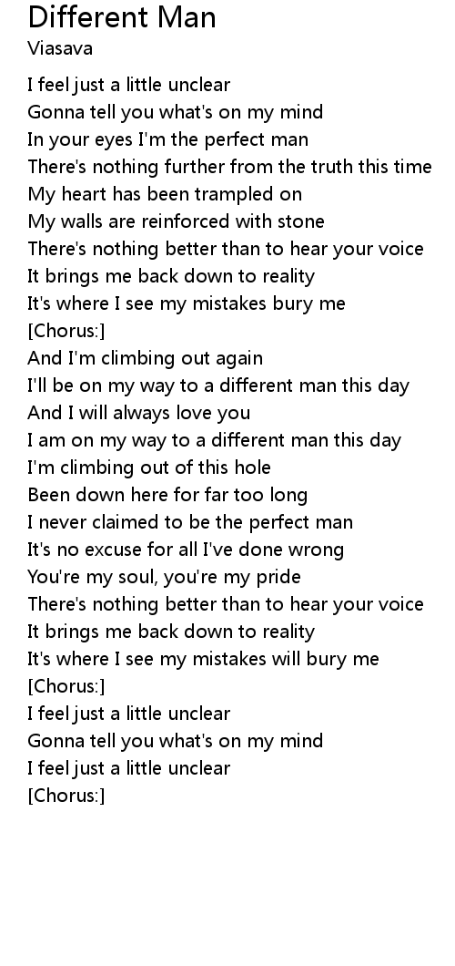 I am on my way to a different man this day |