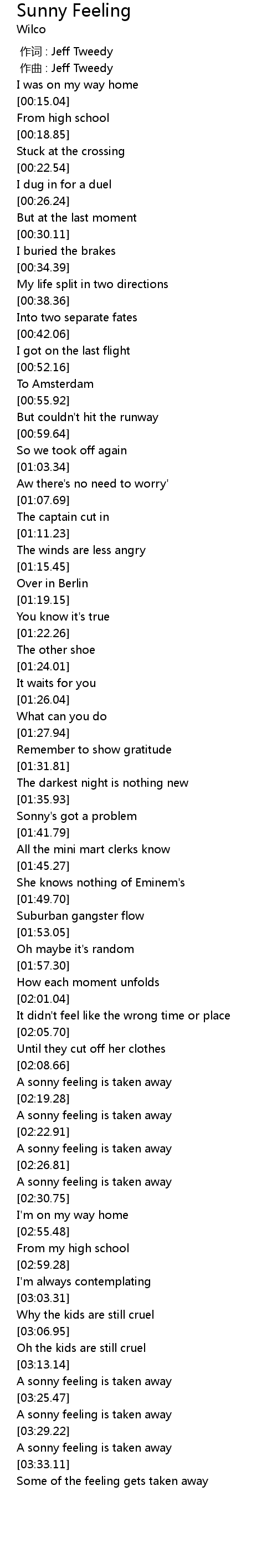 | [00:00.000] | zuo ci : Jeff Tweedy |