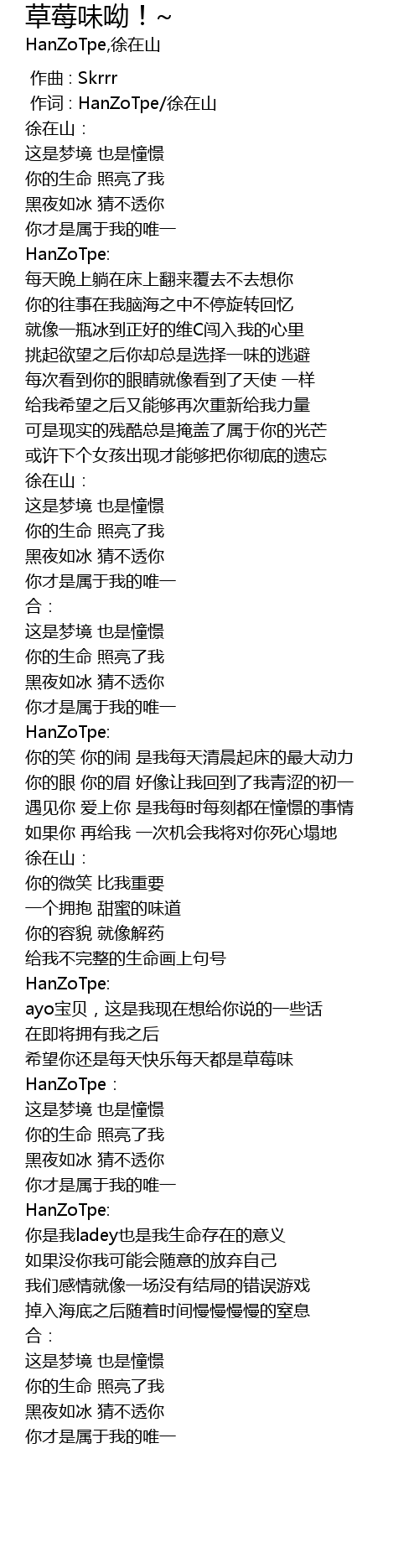 | [00:01.000] | 作词 : HanZoTpe/徐在山 |