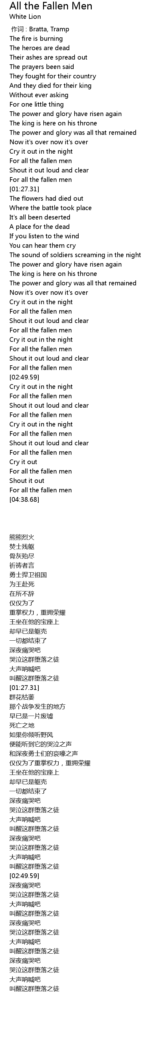 | [01:55.68] | The sound of soldiers screaming in the night |