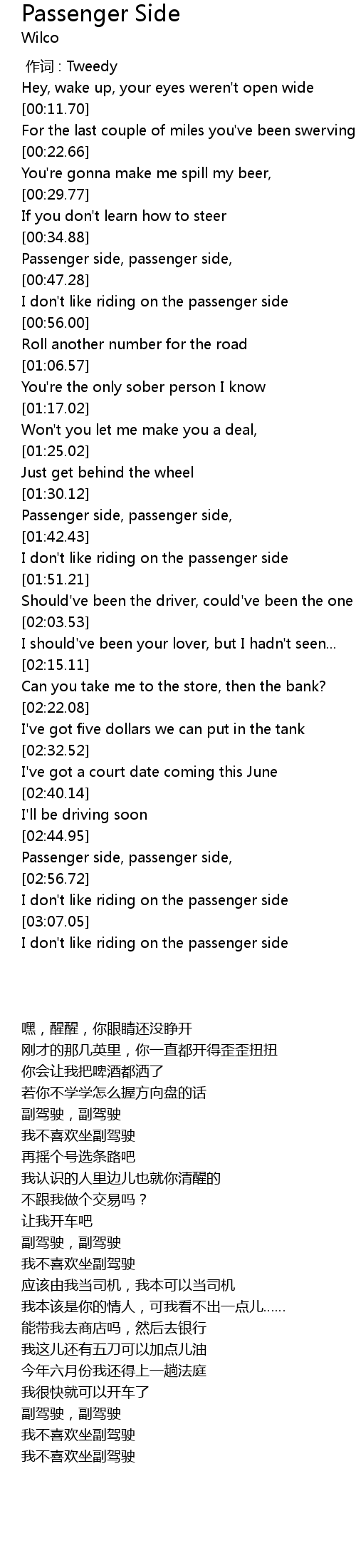 | [01:56.49] | Should' ve been the driver, could' ve been the one |