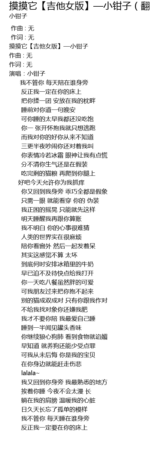 | [00:08.05] | 摸摸它【吉他女版】—小钳子 |