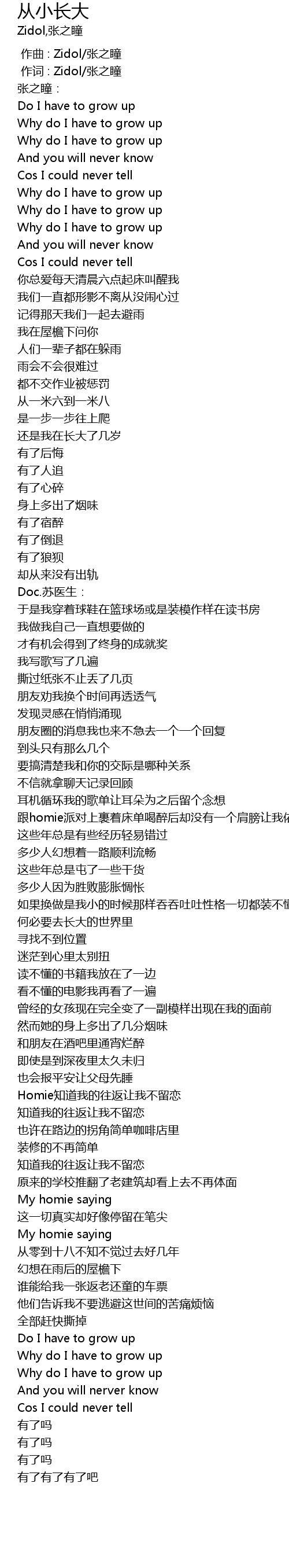 | [00:01.000] | 作词 : Zidol/张之瞳 |